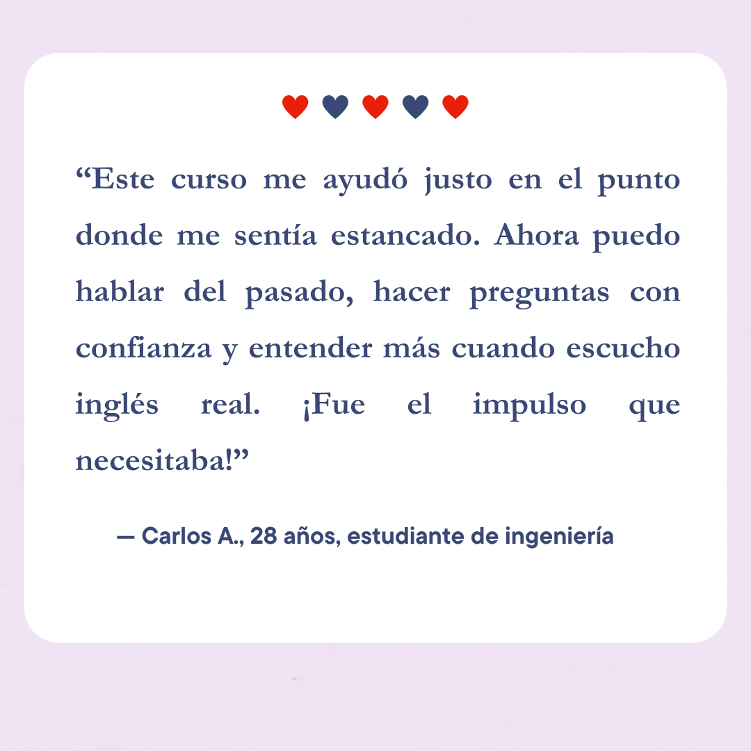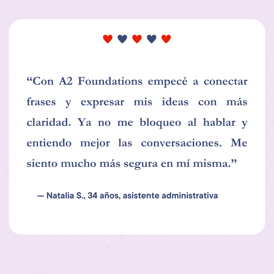 Este curso te ayudará a conectar frases, expresar ideas completas y desenvolverte mejor en conversaciones reales.